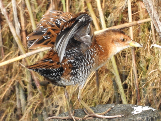 それでも、ご覧の通りその羽色は茶色のヨシ原ではカモフラージュになり