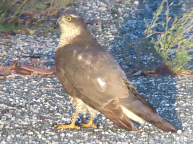中央園路で「ハイタカ」が飛びだし、少し離れた園路に降りました。