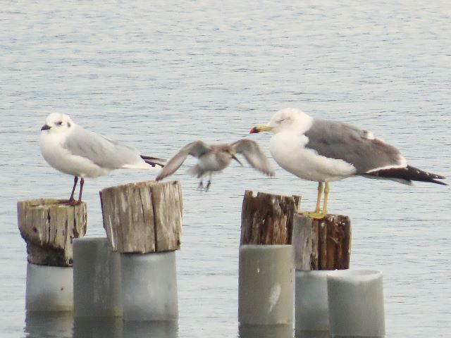 ●ユリカモメ40㎝、ズグロカモメ30㎝で、並べば大きさの違いがはっきり分かる。