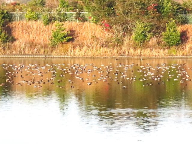 新光産業きらら浜自然観察公園のすぐ横にある調整池に「1,000羽を超えるカモの群れ」が来ていたよ!