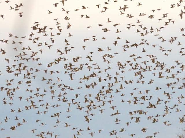 ここでは全体で約1,500の「オナガガモ」と「トモエガモ」が集まっていました。