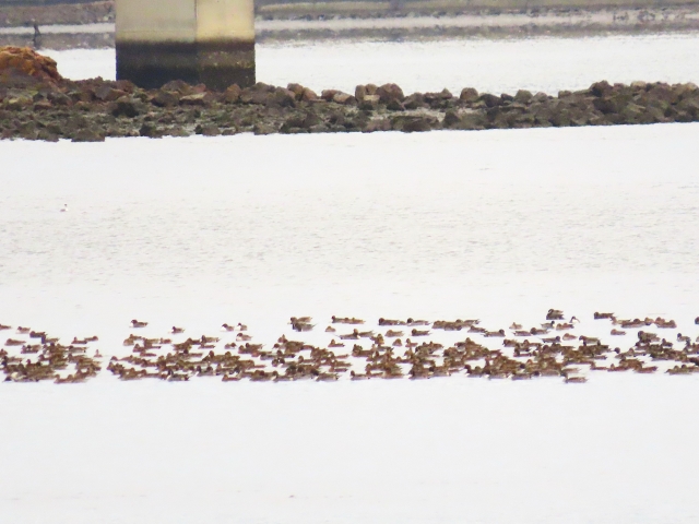 きらら浜周辺のカモの数は例年に比べ多いようで