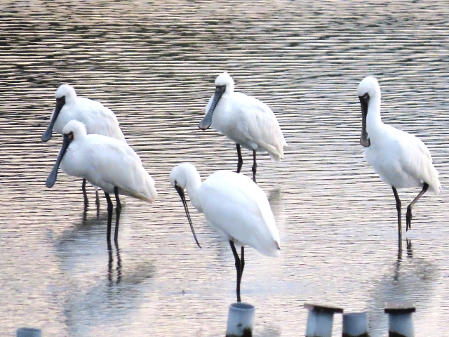 クロツラヘラサギは5羽、そして、なんとヘラサギは4羽!に増えていました。
