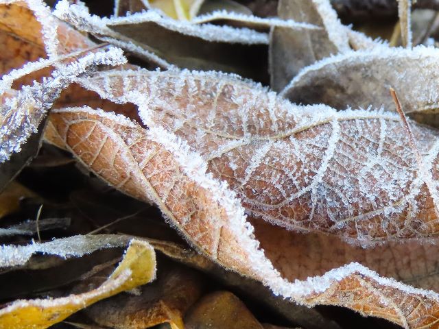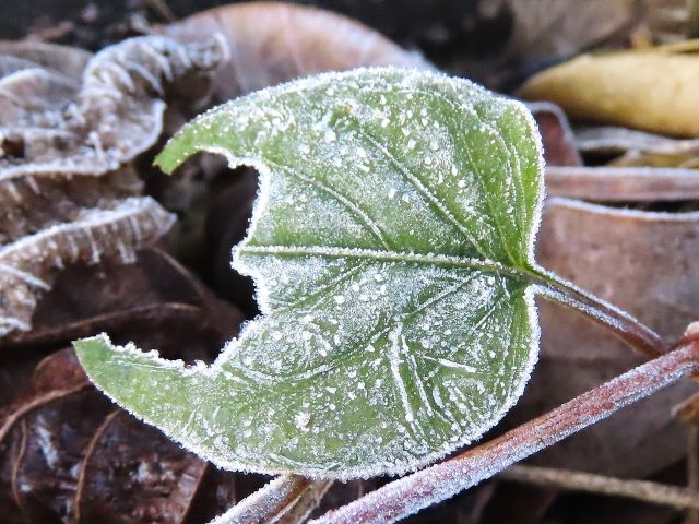 凍えるような寒さでしたが、日が当たるとすぐに溶けてしまう「儚い命の様な霜」は
