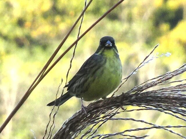 「アオジ」という名前なのに「青く」はなく、「オリーブグリーンと黄色」がきれいな鳥です。